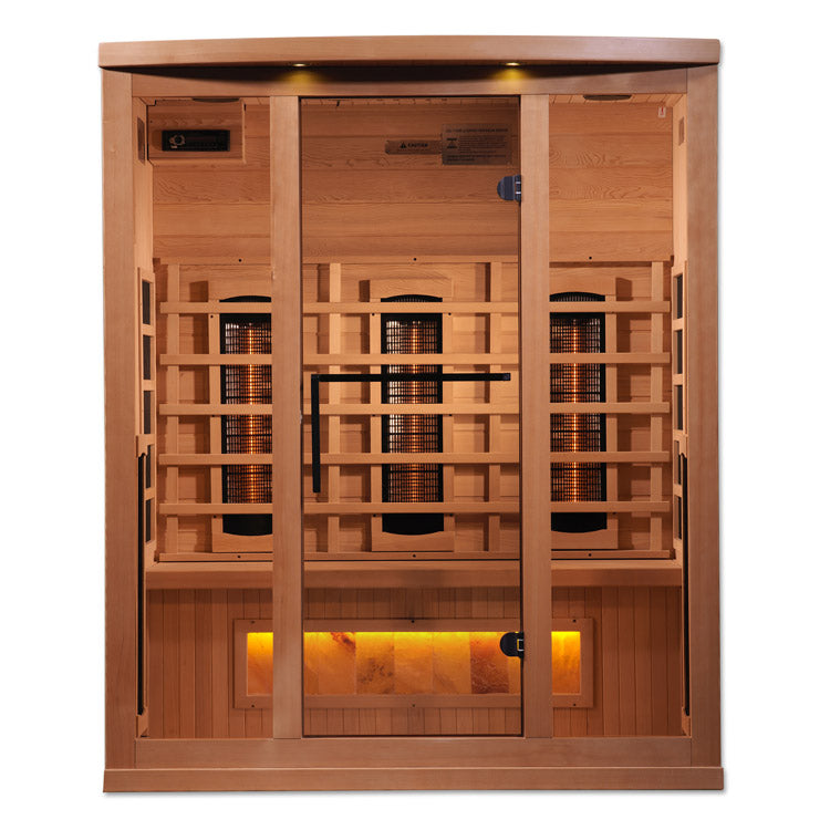 Golden Designs 3-Person Full Spectrum PureTech™ Near Zero EMF FAR Infrared Sauna with Himalayan Salt Bar (Canadian Hemlock)